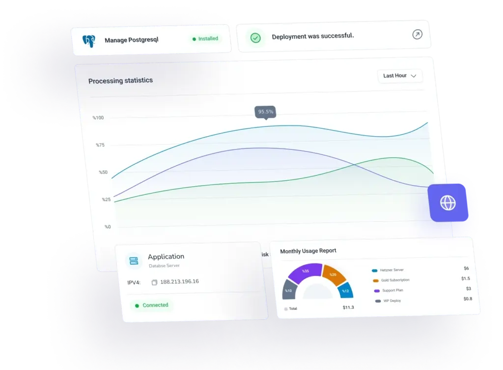 No matter which server provider you use, Zeloy connects everything so you can run your application in just a few minutes.
